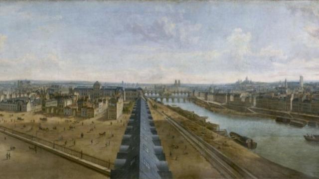 Le panorama de Paris vu des toits du Louvre de Pierre Prévost (1764- 1823) plonge le spectateur au cœur de la capitale, offrant une vue à 360 degrés saisissante qui révèle des monuments emblématiques de la capitale et une vie urbaine animée. L’invention de ce type de peinture, présentée dans une rotonde et qui donne une illusion de la réalité par des effets de perspective, est anglaise. Mais le peintre britannique Robert Barker en céda l’exploitation à Robert Fulton puis à William James Thayer qui la développèrent à Paris, et en particulier au passage des panoramas. Le peintre Pierre Prévost se fit rapidement le spécialiste de ces toiles panoramiques. La vue depuis le Louvre, montrée en 1799-1800, fut la premier d’une impressionnante série de paysages urbains européens qui, présentés comme en spectacle, enchantèrent le public parisien.