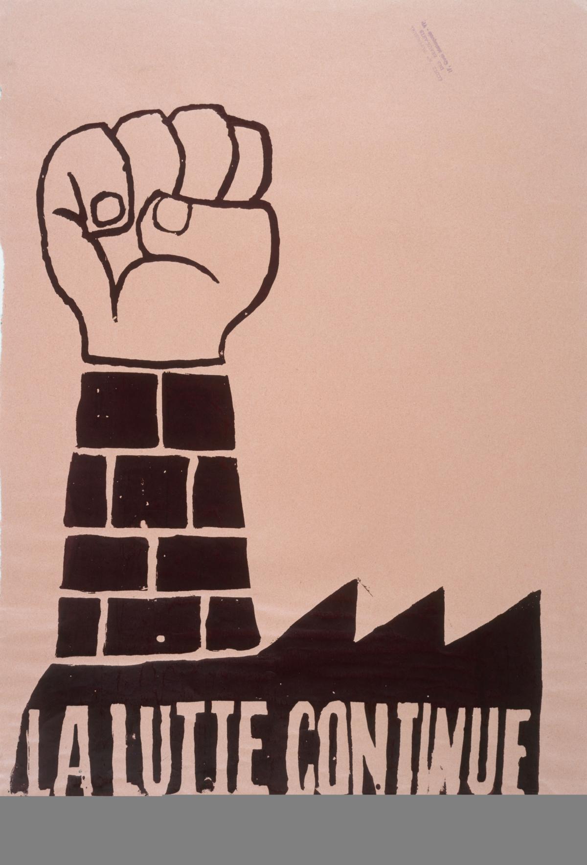 L’École des beaux-arts occupée dès le 14 mai 1968 devient un pôle incontournable de la contestation étudiante et le centre névralgique principal de création d’affiches. Le passage de la technique de la lithographie à la sérigraphie et à l’offset permet l’augmentation rapide de la production : près de 3 000 exemplaires par jour. Une énergie intense s’empare du lieu qui accueille aussi bien artistes, étudiants, curieux, ouvriers qui veulent se former aux techniques, le tout dans une ambiance en apparence désordonnée mais qui révèle toutefois une organisation minutieuse dans la réalisation et la diffusion des affiches. Les projets élaborés collectivement sont présentés et analysés lors d’une assemblée générale quotidienne au rythme des événements. Le mouvement exige l’anonymat. Un style se dégage : économe, direct, monochrome, à fort impact dans la forme et le slogan. L’atelier de l’École des beaux-arts ne produisant que des affiches anonymes, les artistes qui veulent participer au mouvement et se démarquer stylistiquement n’y ont guère leur place. La librairie-galerie La Hune, située boulevard Saint-Germain, devient leur vitrine ; ses murs se couvrent de dessins appuyant des textes littéraires militants.